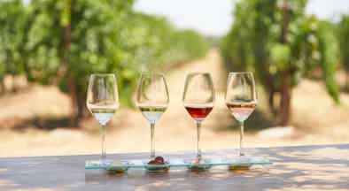 - Probiere vier Weinsorten