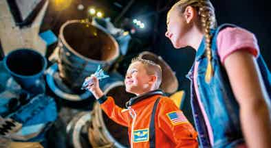 - Berühre ein Stück Mondgestein und erlebe mit einem Simulator den Start eines Shuttles